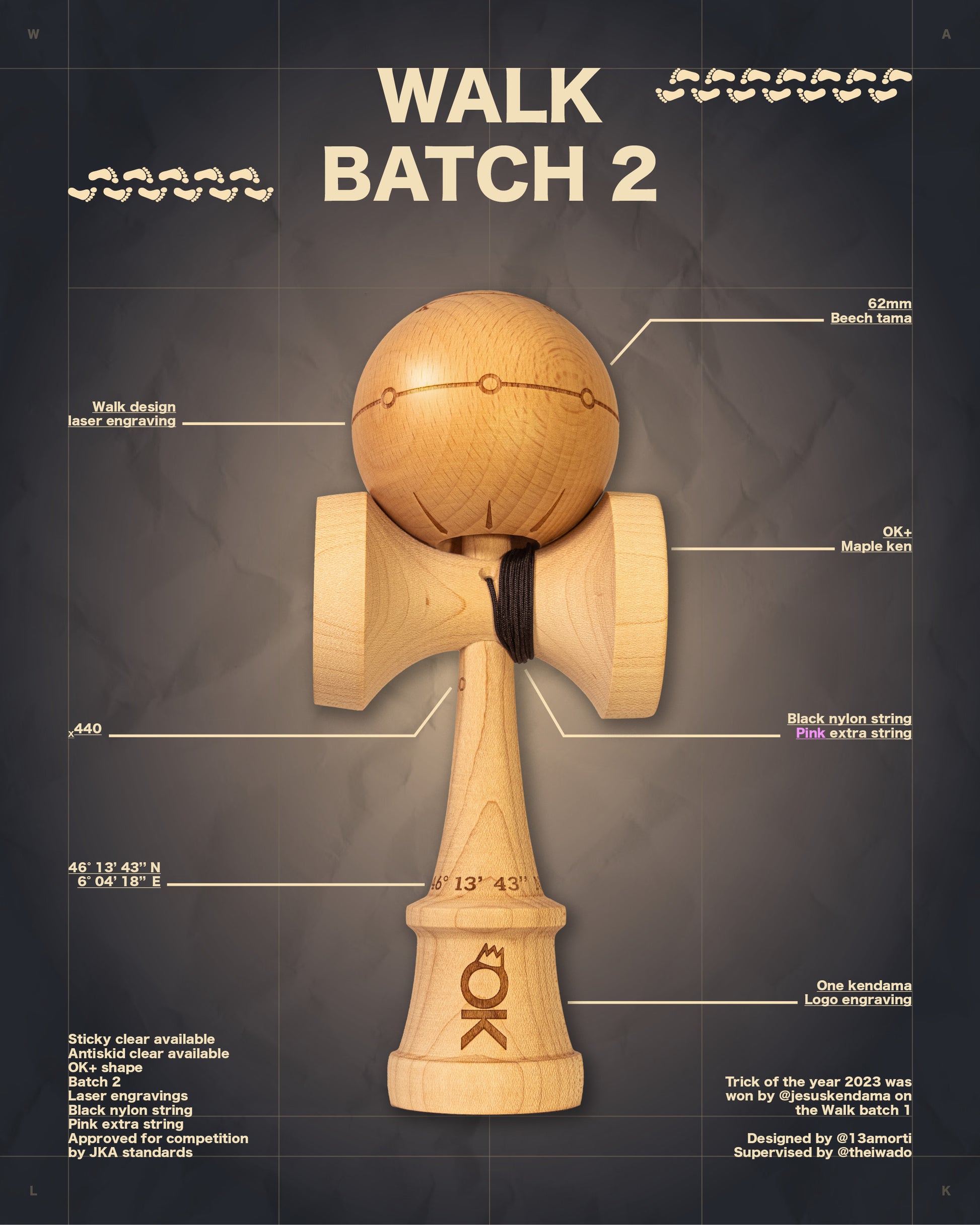 - Design WALK gravé sur le kendama